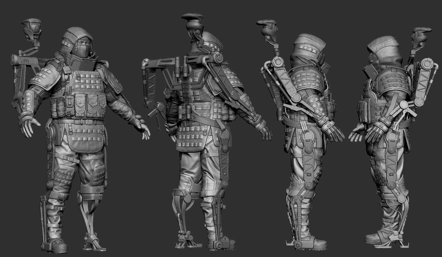 this project was a massive learning and improving phase for me took my entirely to another level running throughout the creation of High-Poly sculpts in zbrush and marvelous designer for cloth and base for armor, preparation of low-poly in maya with uvs, baking in marmoset, texturing in substance painter, rendering, lookdev and shading in marmoset toolbag 4, I used 3D scan store displacement male 01 was super useful with super good results for skin detailing and coloring.