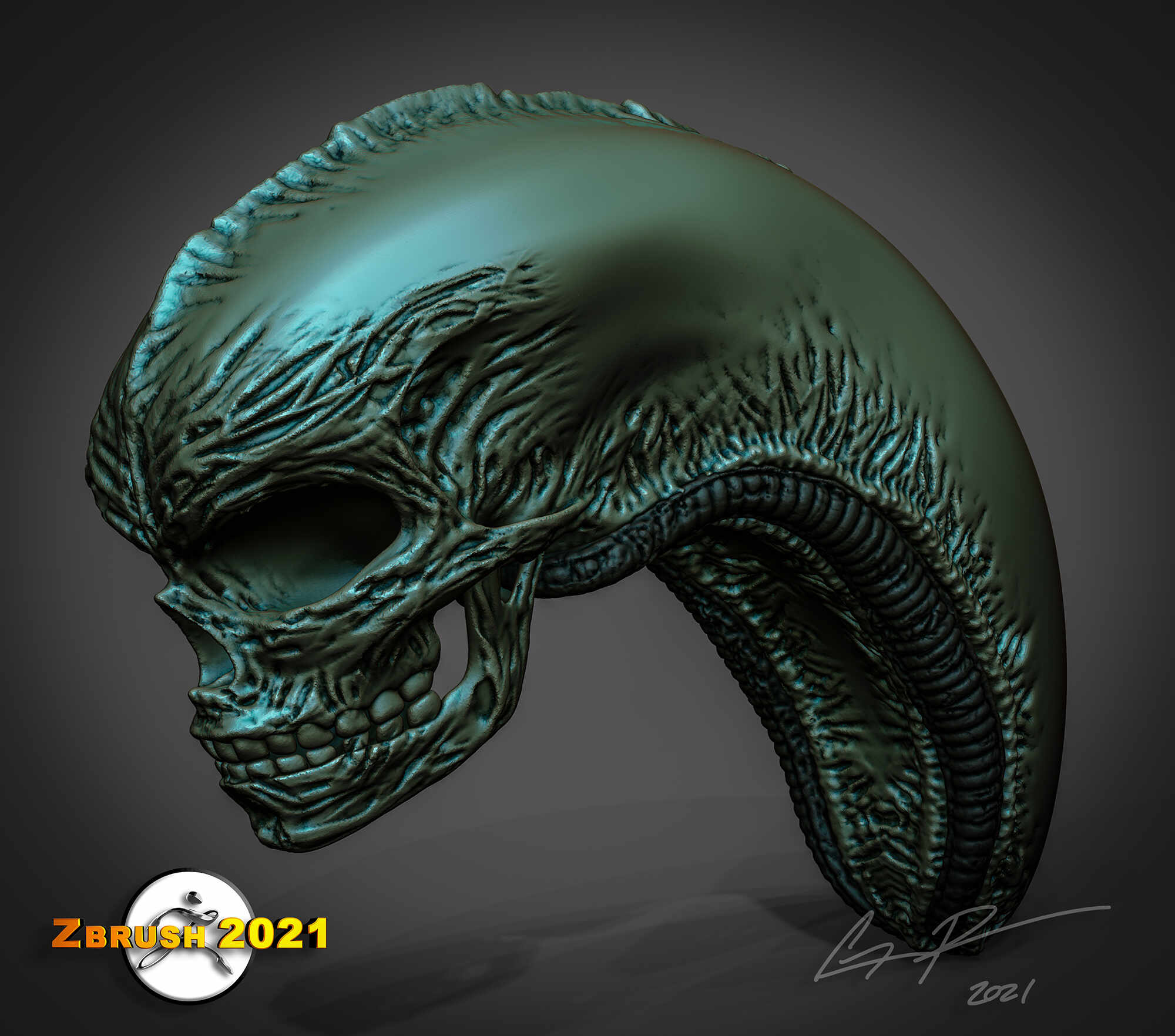 Playing around with Pablander New Giger Brush Set. Spent under a hour playing with it and came up with this critter. Still need to play with the brushes some more, but enjoying the heck out of them so far. Enjoy