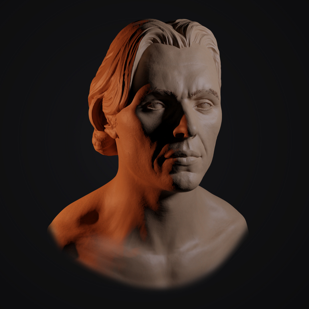 Face study sculpted in zbrush an rendered in blender.
