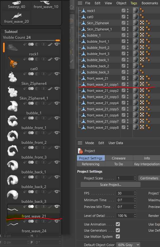 In this case, Zbrush export subtools until it exports “front wave_21” and after that. it just starts exporting a bunch of the same objects and won’t export the correct subtools. And if I swap the order of subtools, the same thing happens. I tried changing the name of the subtools and changing the polygroup but nothing really worked.