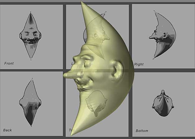 It works with one image, with up to six views on the one image. Did you try the example.zip I posted at the start of the thread? If you follow the instructions included with that it should give you an idea of how the plugin works. The views are already set with that. Press the R I Setup button, choose Load Project and load the project & image files (Moonface.dat & Moonface.jpg). Then load the model Moonface.ztl using the Tool>Load Tool button. Draw the model anywhere on the canvas and hit T to enter Edit mode. Now click the Front view button and the model will be placed and canvas scrolled for that view. (Don’t SHIFT-click the button otherwise you’ll overwrite the setting). Try out the other buttons.