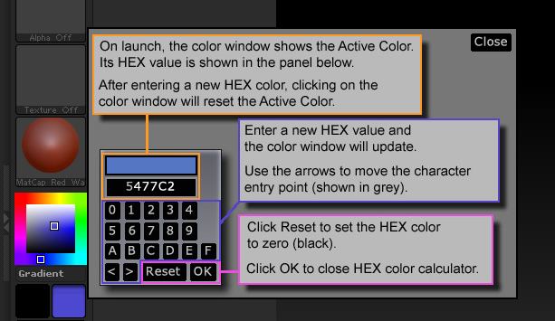 Load the HEXcolor.zsc file from the ZScripts menu.