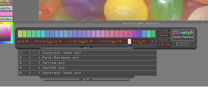 - Save and Load palettes at any time. Loads palettes from [ZColor](http://www.zbrushcentral.com/zbc/showthread.php?t=20665) and previous versions of ZSwatch. The current palette and slider settings are preserved between ZSwatch and ZBrush sessions.
