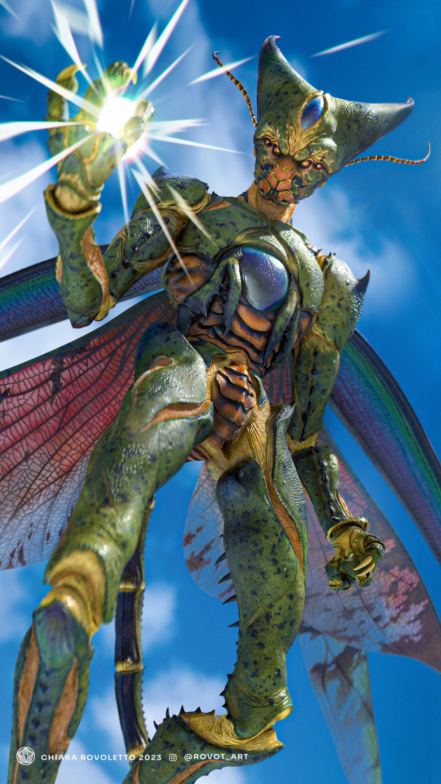 Many thanks to Mauro Baldissera, who gave me feedback and advice throughout the process and made Cell’s rig and walking animation that you can watch clicking here. I took inspiration from Guillaume Menuel’s amazing artwork as a starting point for my reinterpretation.