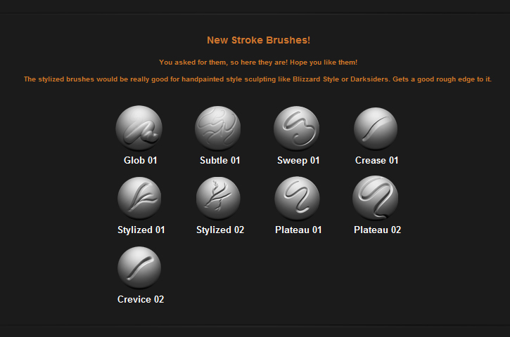 So look forward to some new brushes very soon. Btw over 15,000 downloads of individual brushes and almost 7000 downloads of the packaged brushes so far! I didn’t even know that many people knew zbrush haha.
