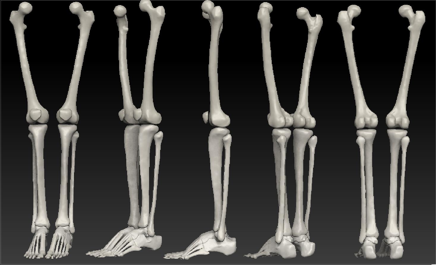 The feet are divided into polygroups for the individual bones of toes and metatarsels - I created the other bones of the foot in two solid pieces, a bit simplified but I don’t think it matters much.