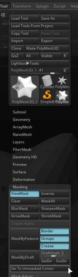 And there would be actually this handy button “go to unmasked mesh center”, BUT it’s (no wonder) also far away, just where the pivot sits.