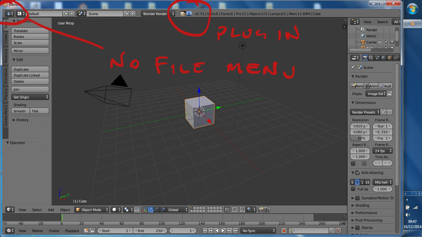 I installed the Blender plug-in (for 2.69) in the usual way and enabled it. The two buttons appeared in the menu bar. I crashed Zbrush by trying to export the cube from Blender so I assumed that Zbrush was not yet fully configured.