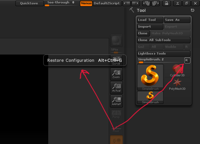 I cleared the cache within zbrush GOZ. I have tried every combination again…using all three versions of GOB. Still nothing works. As far as pressing the R button in Zbrush…it does not look like the references I see where one can change the GoZ program. I have included another screen grab of what happens when I hover over the R button. No matter what I get…Zbrush will crash. I am running windows 8.1…but this was not a problem at all for me on my earlier Cintiq Companion tablet also running 8.1