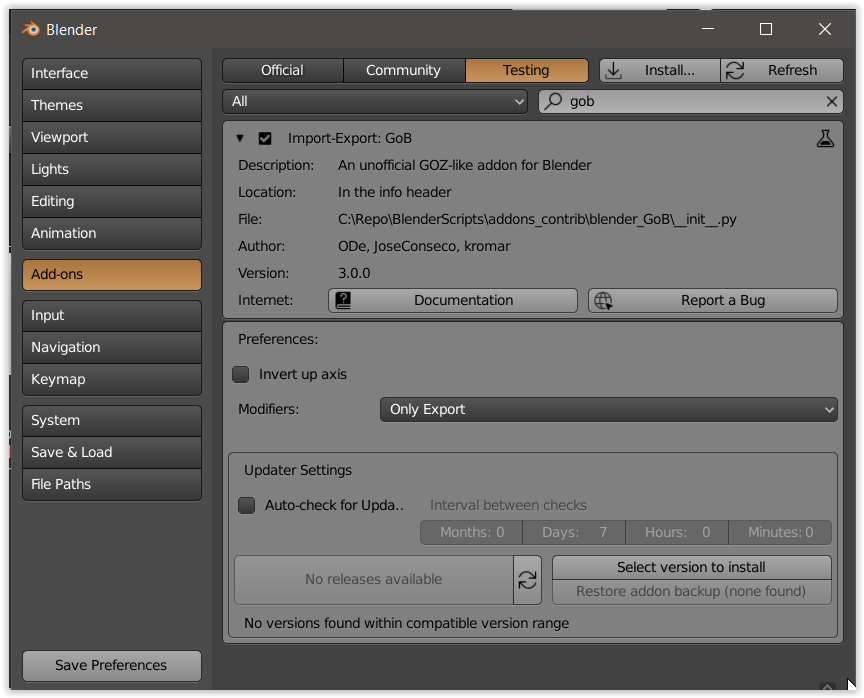 Daily Build for Blender 2.80 last download of March 8, 2019 there did not work add-ons. Please fix make sure everything work on GoB and GoZ please.