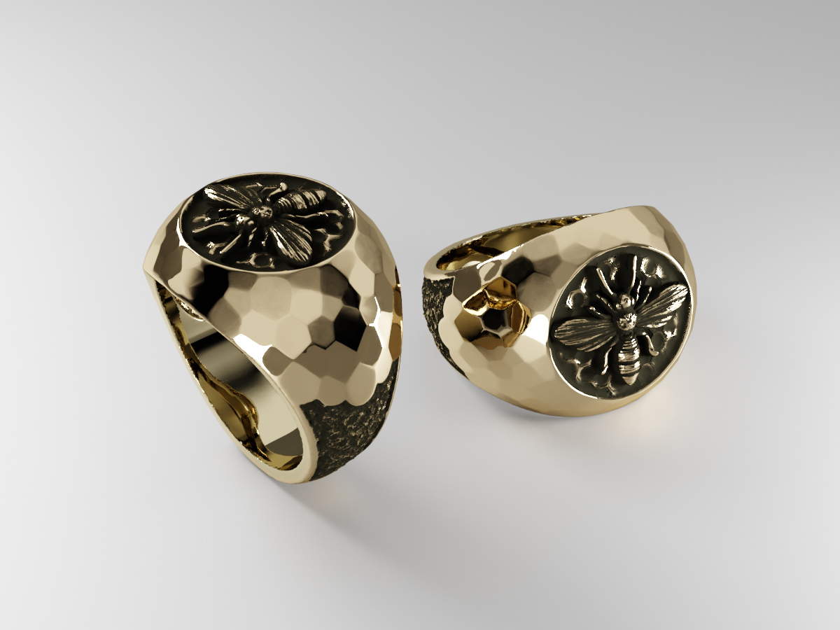 Ring with Bee made of gold with deep oxidation.