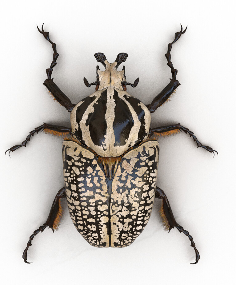 Super fun project I worked on; an augmented reality app for a promotion at the Alexander McQueen shops @alexandermcqueen. I modeled and textured the goliath beetle. App was created by Jake Mengers @digitalinsectarium, AR App built by @_bruvva. Shoe scans by @dmblees and @jandiraguasque. Model was fairly low poly and all textures had to fit within one 2K texture. Model was less than 30K polys. Did not do much to the bottom since it would not be seen in the final app.