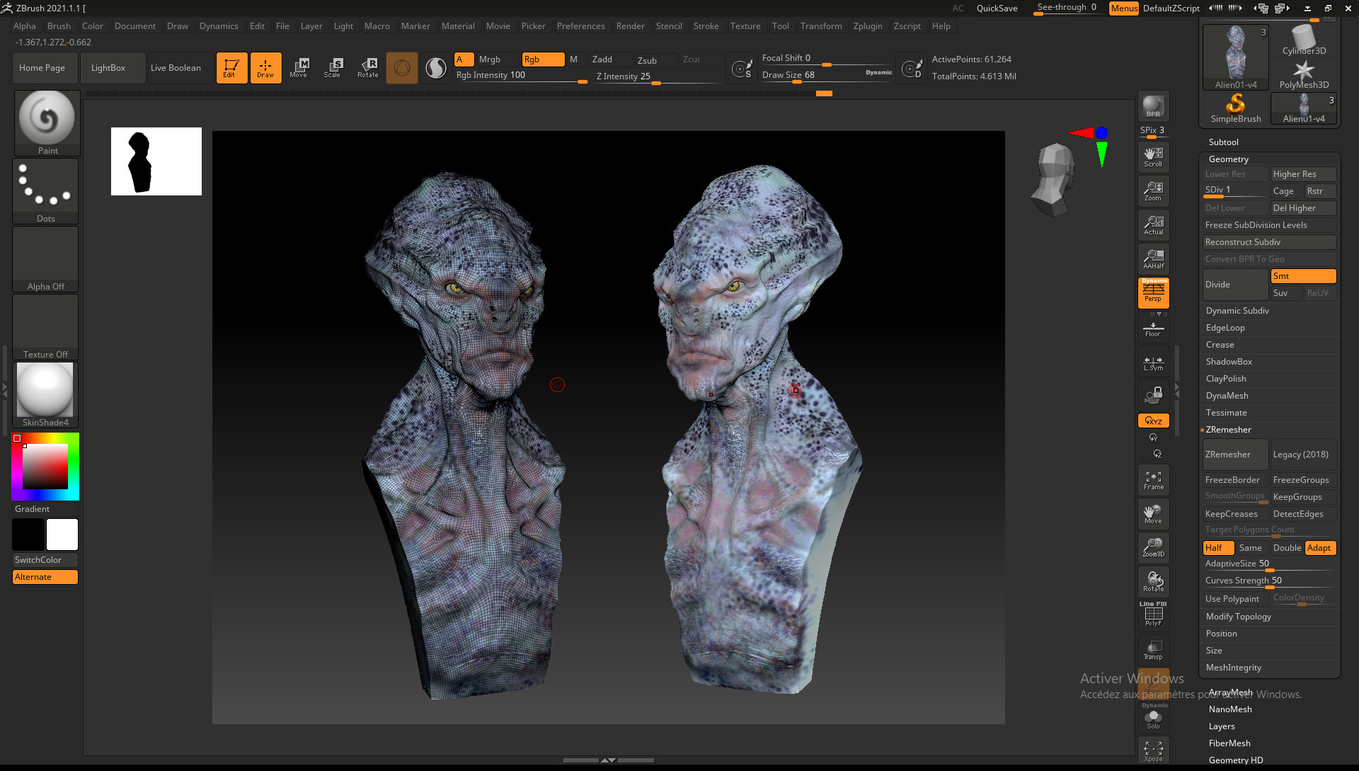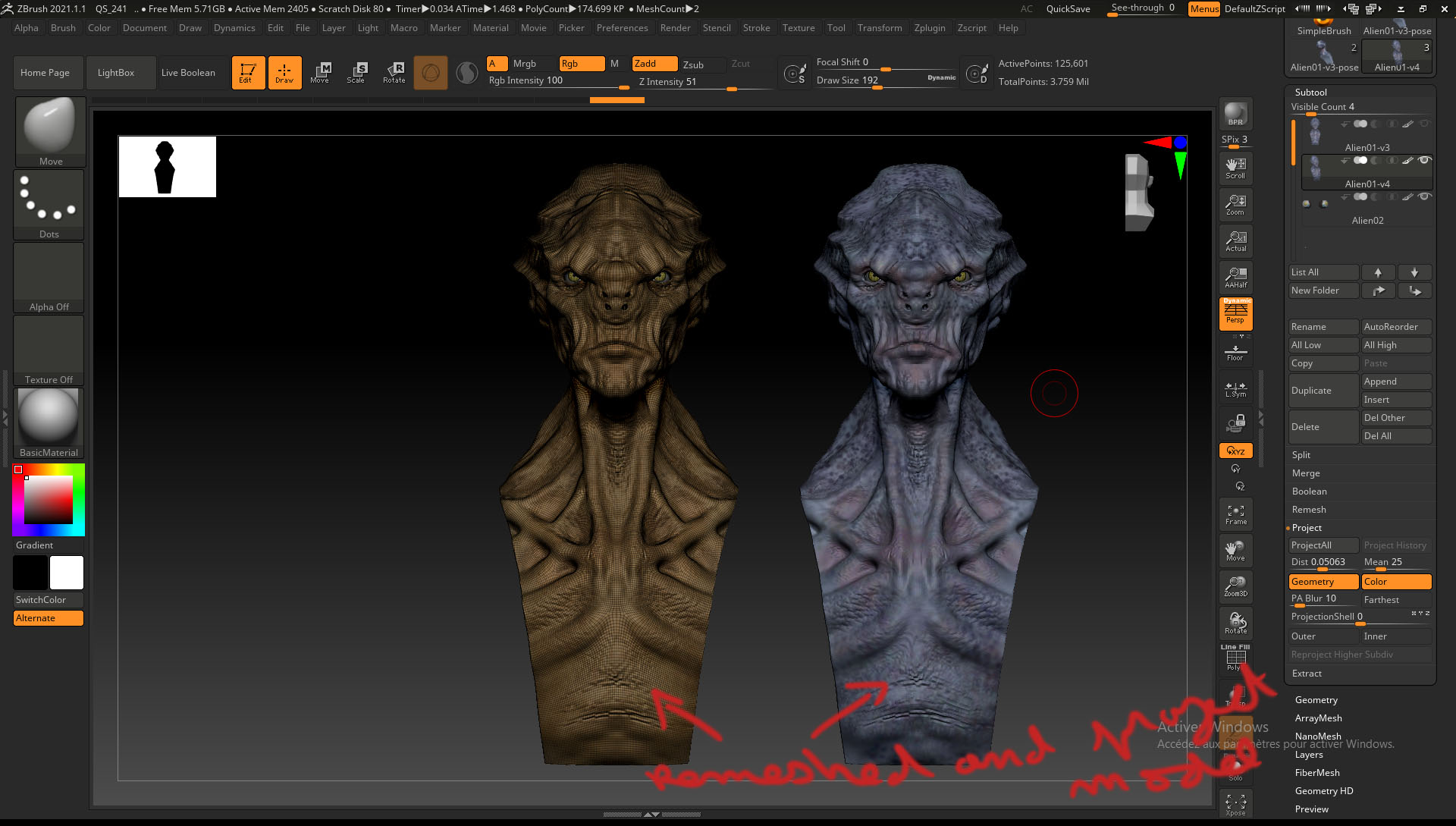 Oh yeah I will do that I have nt done the normal, I did and understand for the polypaint, I also projected details on a remeshed geometry with subdiv, but I need to do the normal to understand how to prepare for game engine the model, so thank !!!