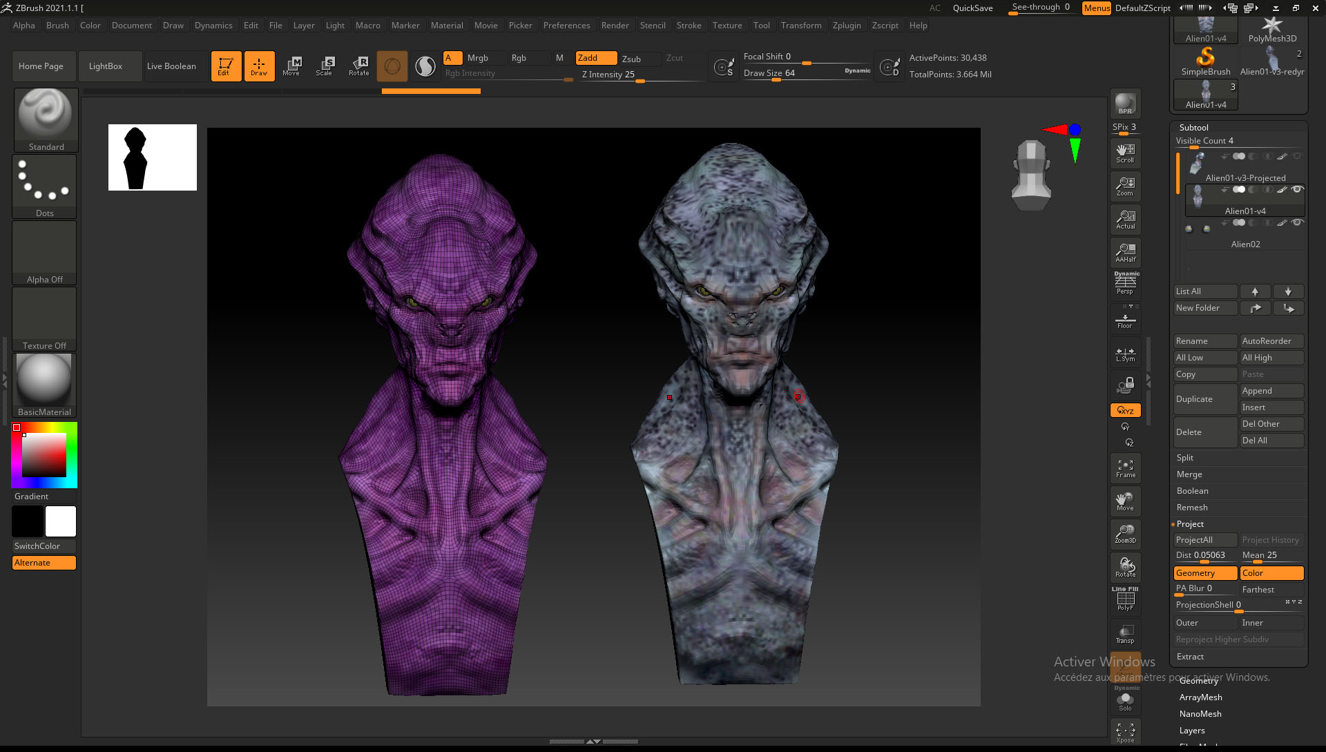 I try to reduce the resolution to see whats goin on with the projection but my polypaint resoltion dont match with hight res ones…