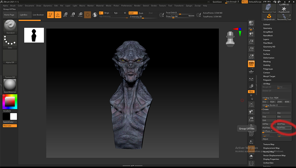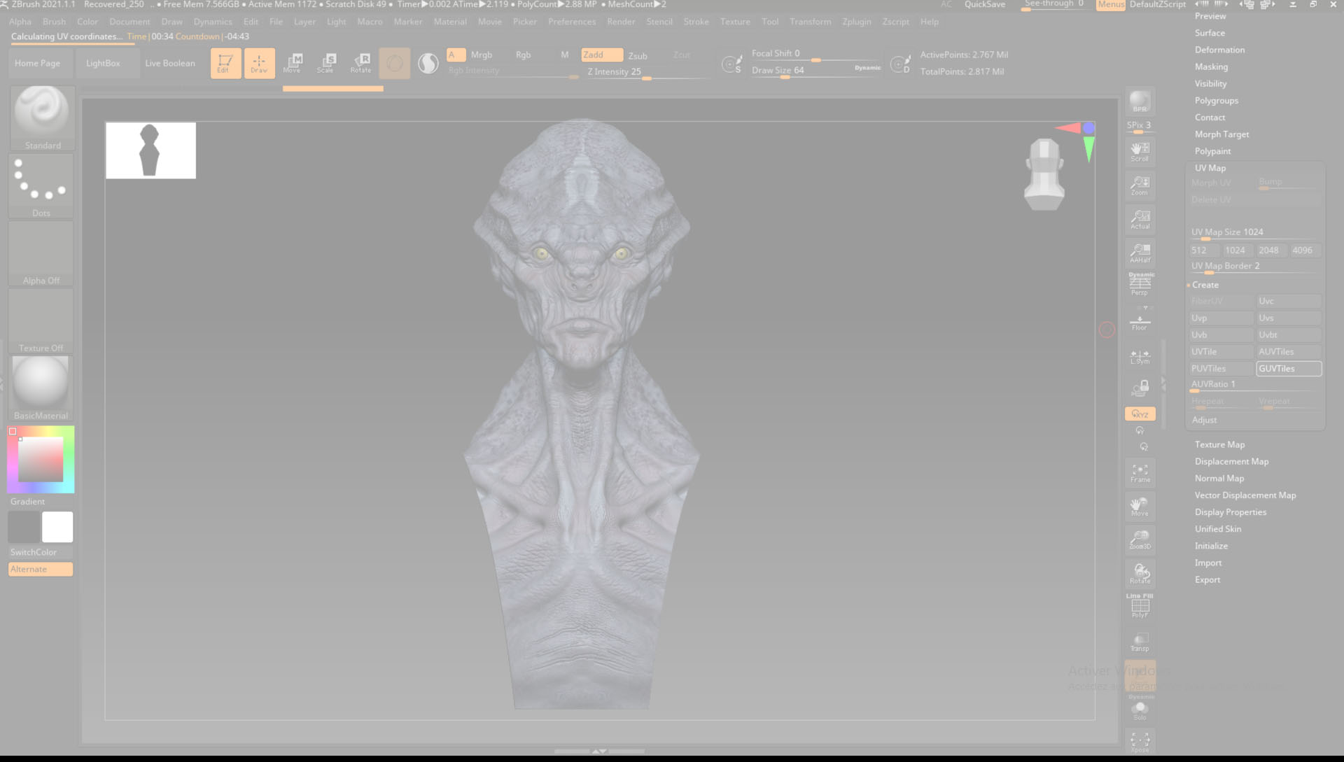 Hi sorry I wasn’t front of my computer I try to fix the mesh then I GUVTiles again and it’s freezing again its when I dynamesh the geometry that it’s getting a bug during the process…