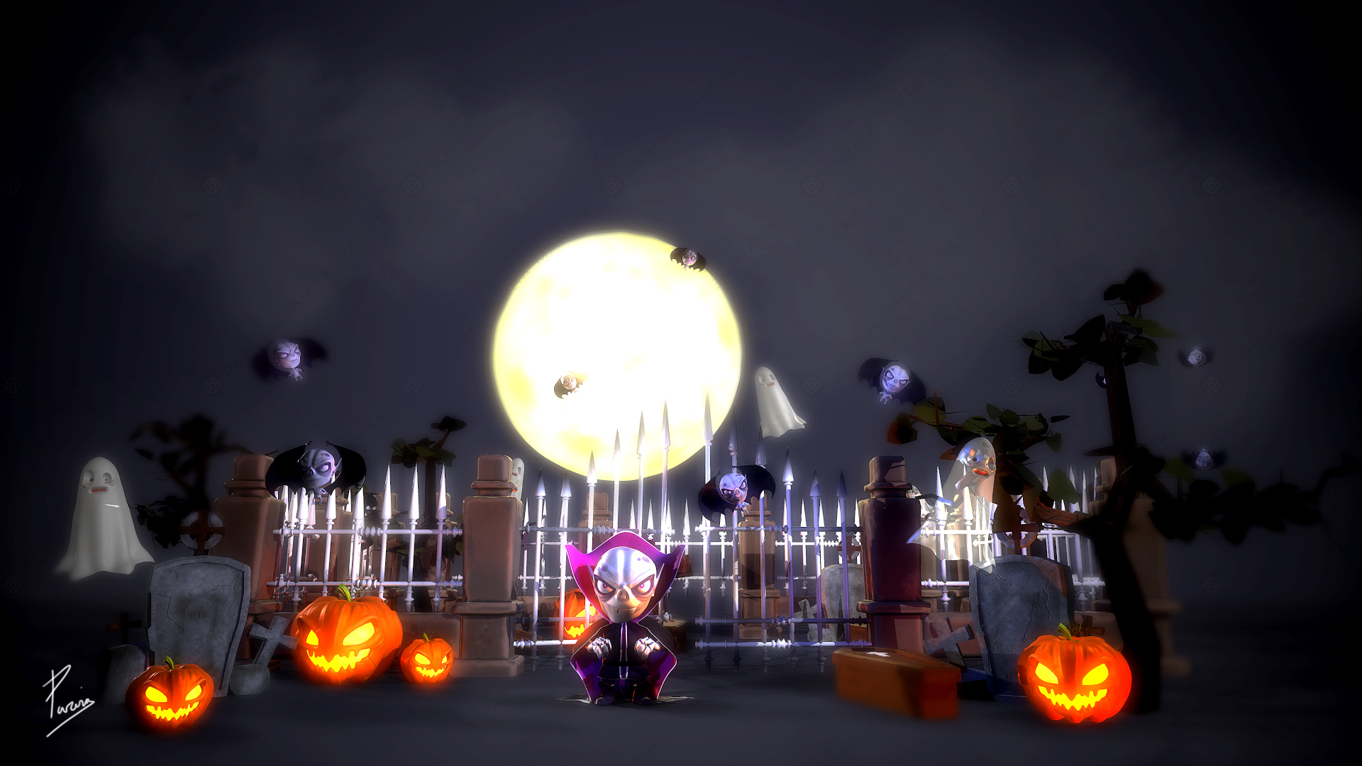 I sculpted this Halloween set in Zbrush .just the main character based on concept art Habra Cadabra. Used Marmoset to render and a little bit of retouch in Photoshop.