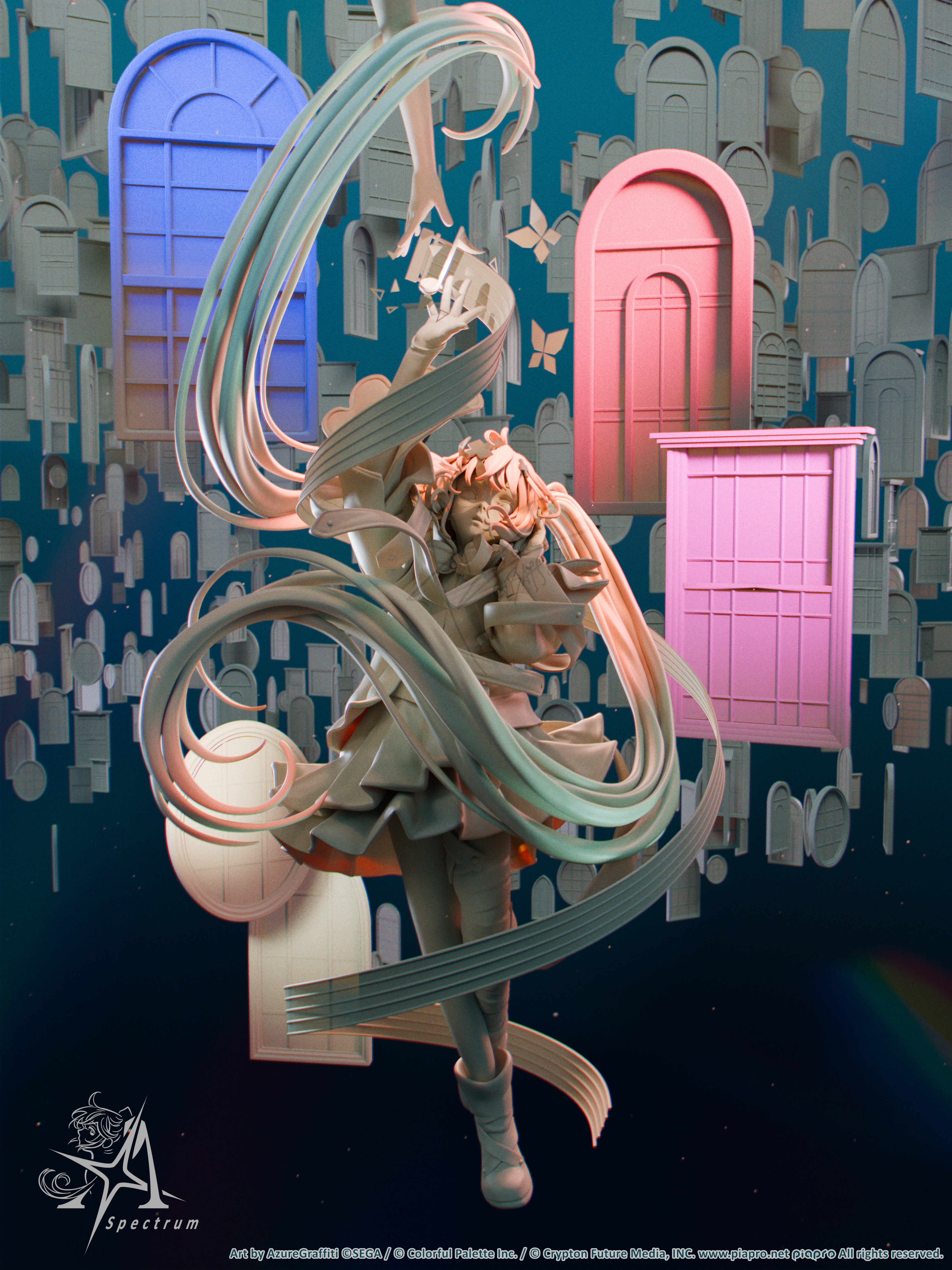 The project was inspired by the movie “Colorful Stage! The Movie: A Miku Who Can’t Sing” and the finale song “Hello, SEKAI” by DECO*27. I wanted to capture the central plot line of becoming the hand which pulls you up from the bottom of the ocean mixed with Miku being mid-transformation from her closed-off design to her open design.
