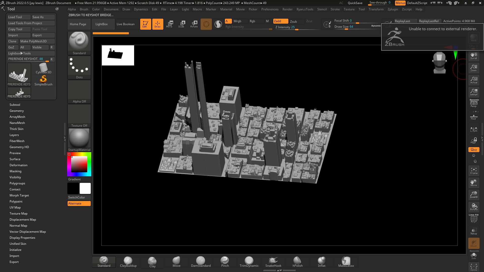 Trying to use keyshot in project (ZClassroom Lesson - ZBrush for Concepting - Part 4) Keyshot activated press BPR and get "unsble to connect to out side render…Any suggestions on fix!