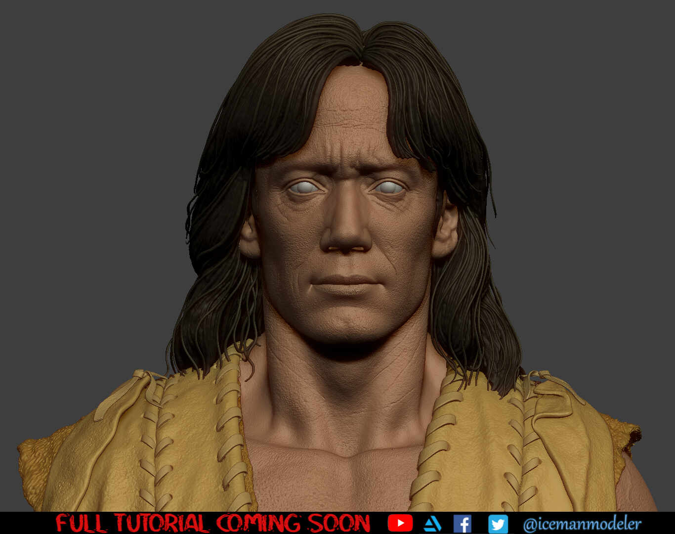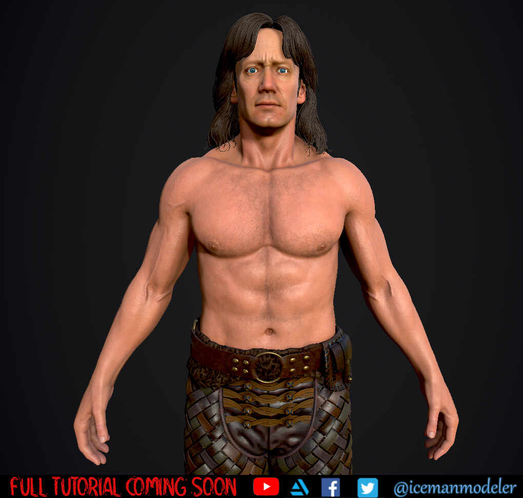Next step will be to rig & skin this guy, create the base and finally pose and simulate the hair with a wind blowing the hair.