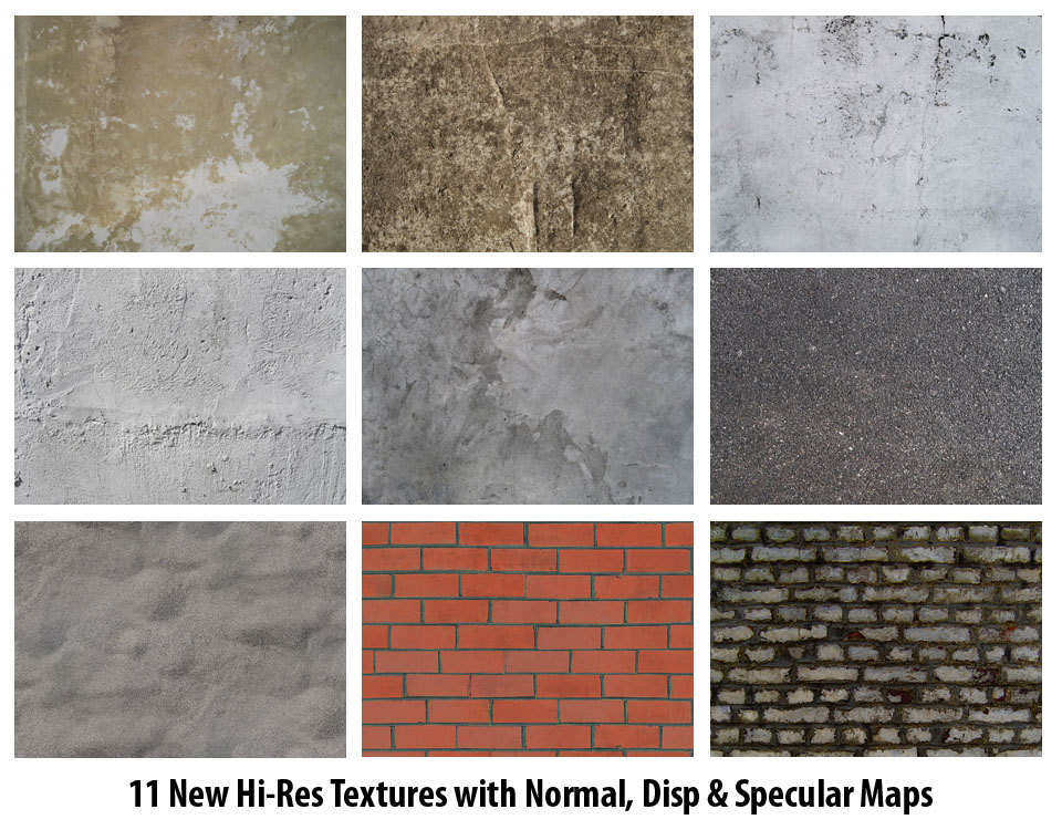 All textures comes with normal, displacement and specular maps.