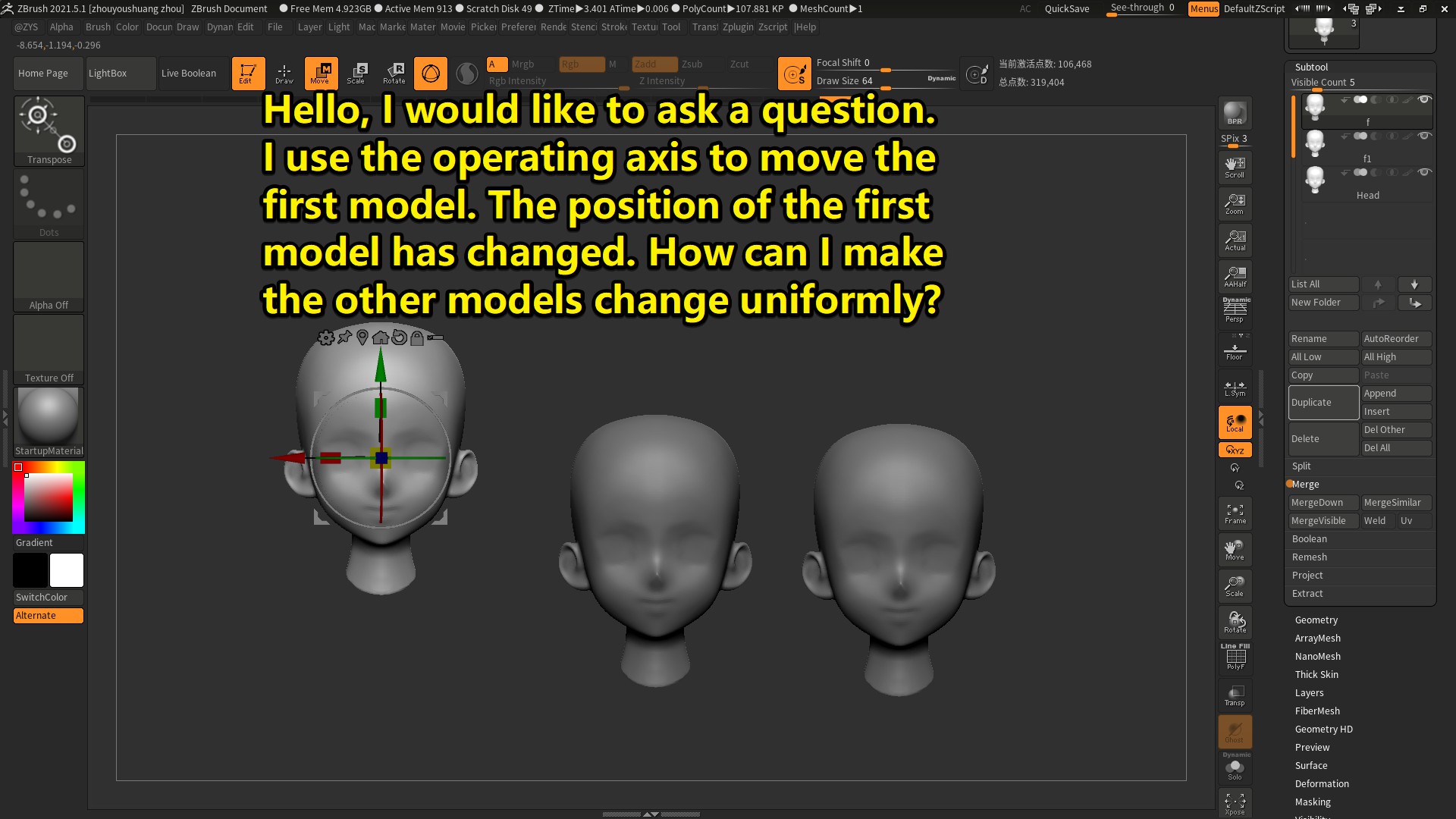 Hello, I would like to ask a question. I use the operating axis to move the first model. The position of the first model has changed. How can I make the other models change uniformly?