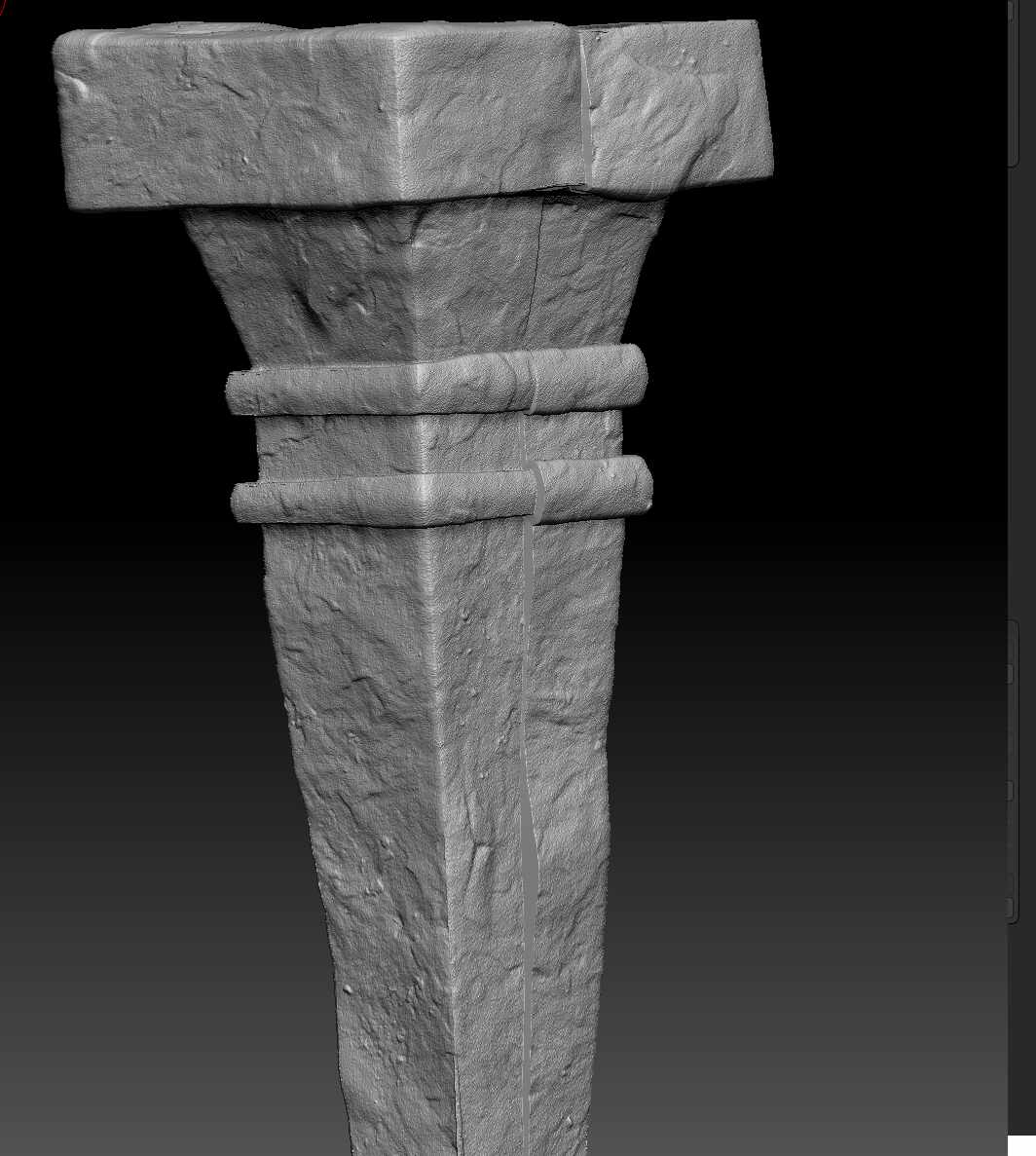 - I export the pillar model into Substance Painter instead, and fix the seams by blending heigh maps and other methods there. I export back the mesh and displacement into zbrush.