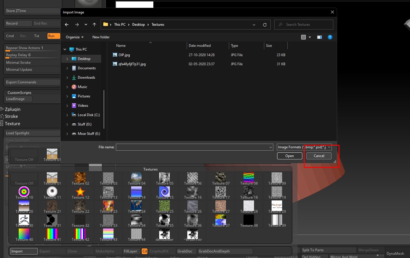 But the problem is after the import texture dialog box opens up in zbrush, if I press cancel and not import any texture the macro still runs and it’ll flip the already applied texture. So my question is, is there anyway to check if a texture file was imported or not?