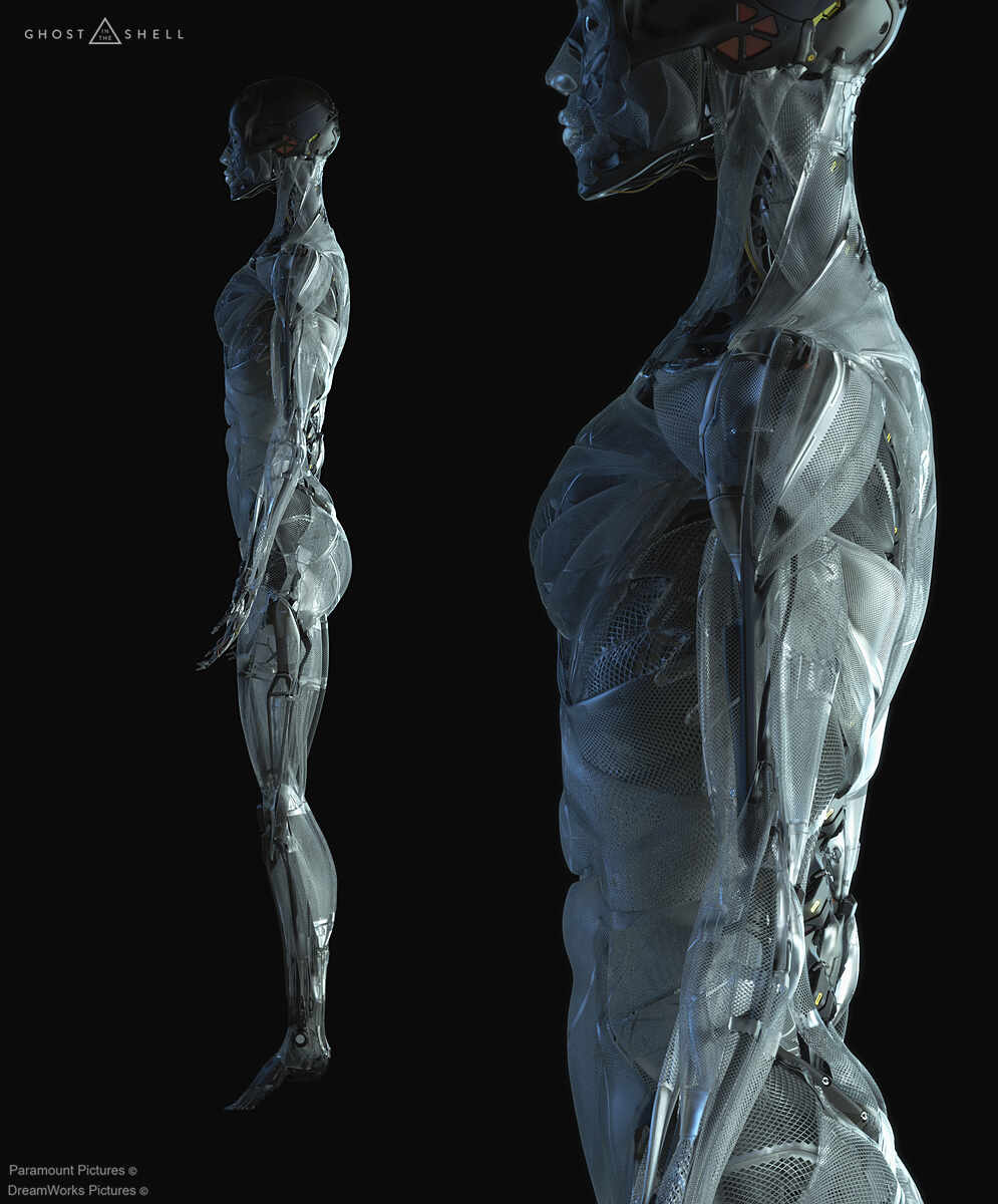 I’m working on a project where I’m trying to create a surface like the transparent muscle tissue / mesh pattern of Major from Ghost in the Shell (Vitaly Bulgarov).