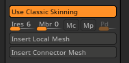 Once you set that up, you can then create a more complex ZSphere rig, when you can then select a certain ZSphere and you will see two option available Insert Local Mesh, and Insert Connector Mesh.