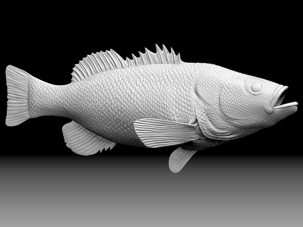 Here’s an early render of the bass I made a while back. The final looks better, but I’m not at work. This technique gives a natural look because you drag on each scale individually, but the tilt brush is at least a thousand times more efficient.