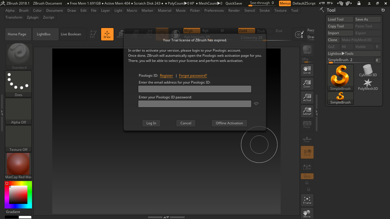 I am trying to renew the ZBrush Software, as the Trail that I had partook in has expired, but I am unable to. Do I have to pay, in order to use ZBrush again? I do not have the Money to. Can I use a Student Account, as I attended University, where I studied Computer Games Modelling & Design. This is the Message that appears, whenever I try to reopen ZBrush. Where is the Pixilogic ZBrush Web Activation Page on my Account?