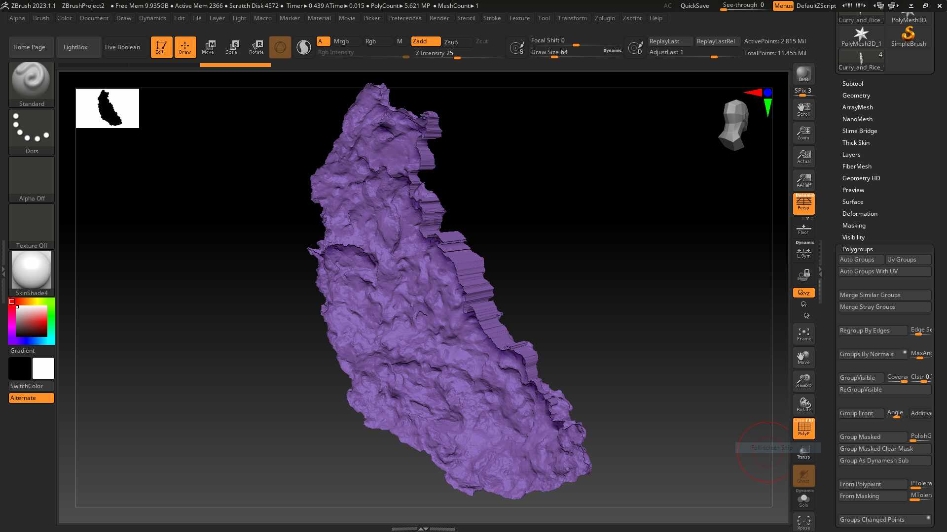 You will end up with a new subtool UMesh_“name of curry scan subtool”. Now you can do what you want with it. For example, activate Dynamesh, click on the resolution slider and drag onto the body of the scan, and Dynamesh. Clean up areas where the scan was off and ZRemesh or whatever according to the intended purpose.