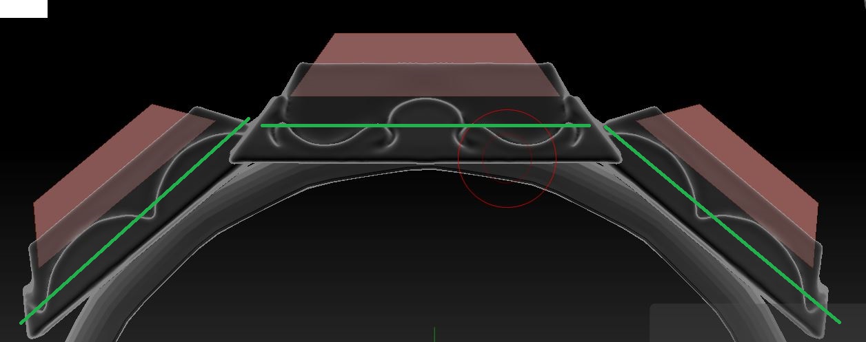 I’m designing a ring and I have the 3 stones at the top as one separate subtool and the other subtool is the ring shank but both are in the same folder so I can scale them up and down together as needed using the transpose set trick in the folder. But the problem I have is I realize I need to extend the bottom of the stones down. (I want to make the bottom of the stones be where the green lines are but keep the top of the stones where they are in relation to the ring which is a separate subtool). I want the top of the stones in relation to the ring to be the same. I don’t know how to make the stones longer on the bottom only. I assume I’m going to have to separate all 3 stones and then extend them down but how can I do this while they are in place with the ring? I just realized the best idea is to use Z-Modeler and push/pull the bottom faces down. The trouble I have now is I don’t know how to extrude them all at the same time so they are all equal. I guess I have to to try and make them one polygroup but I don’t even know how you then select and whole poly group to extrude at same time instead of one face. Thank you.