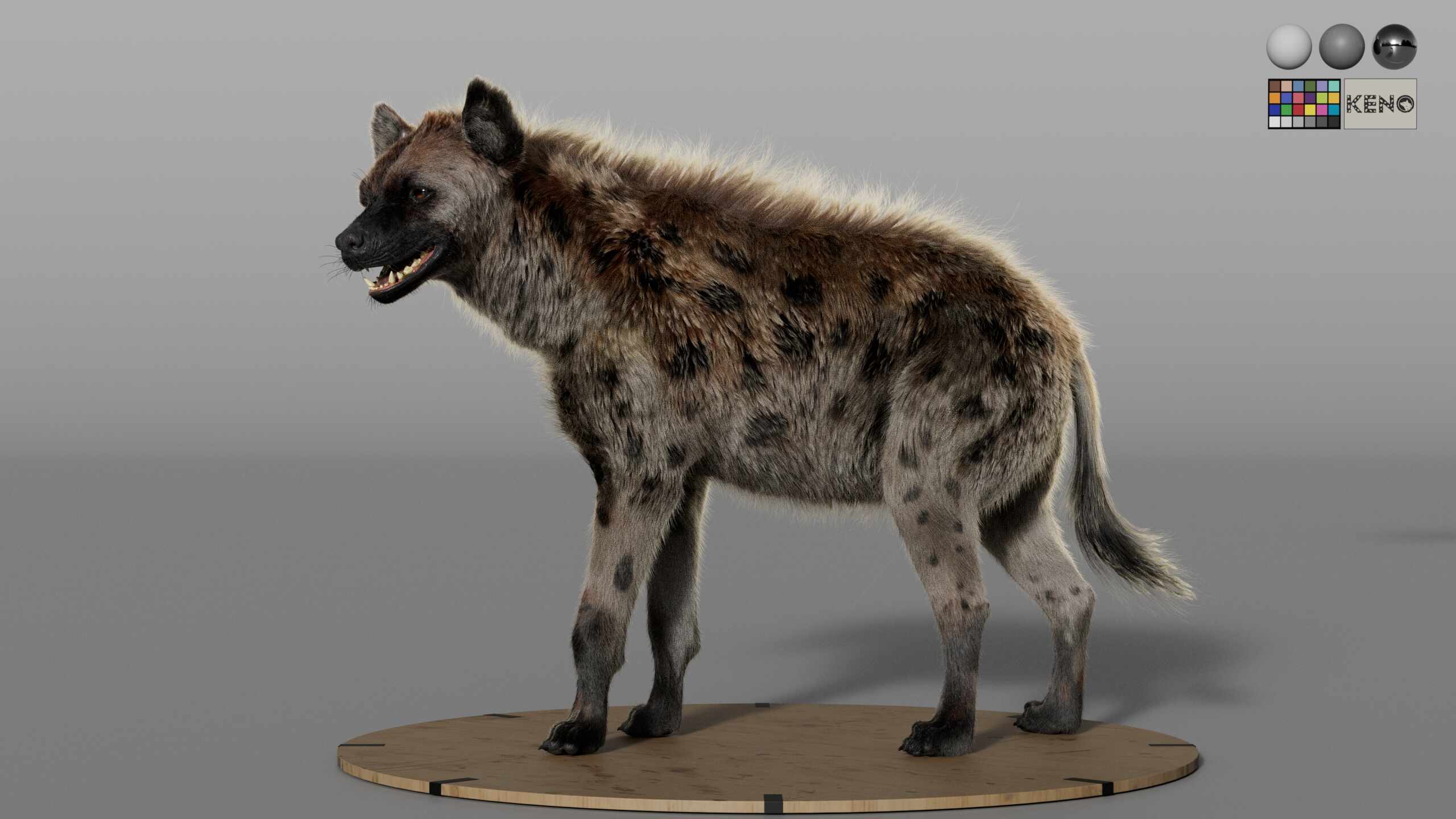 (KENO) spotted Hyena, personal Project. all aspects by me. Grooming, Shading, Lighting, Render, Houdini (LAMA shader) RENDERMAN. Sculpting all model on ZBRUSH, Retopology and UV MAYA, Texture Painting on MARI.