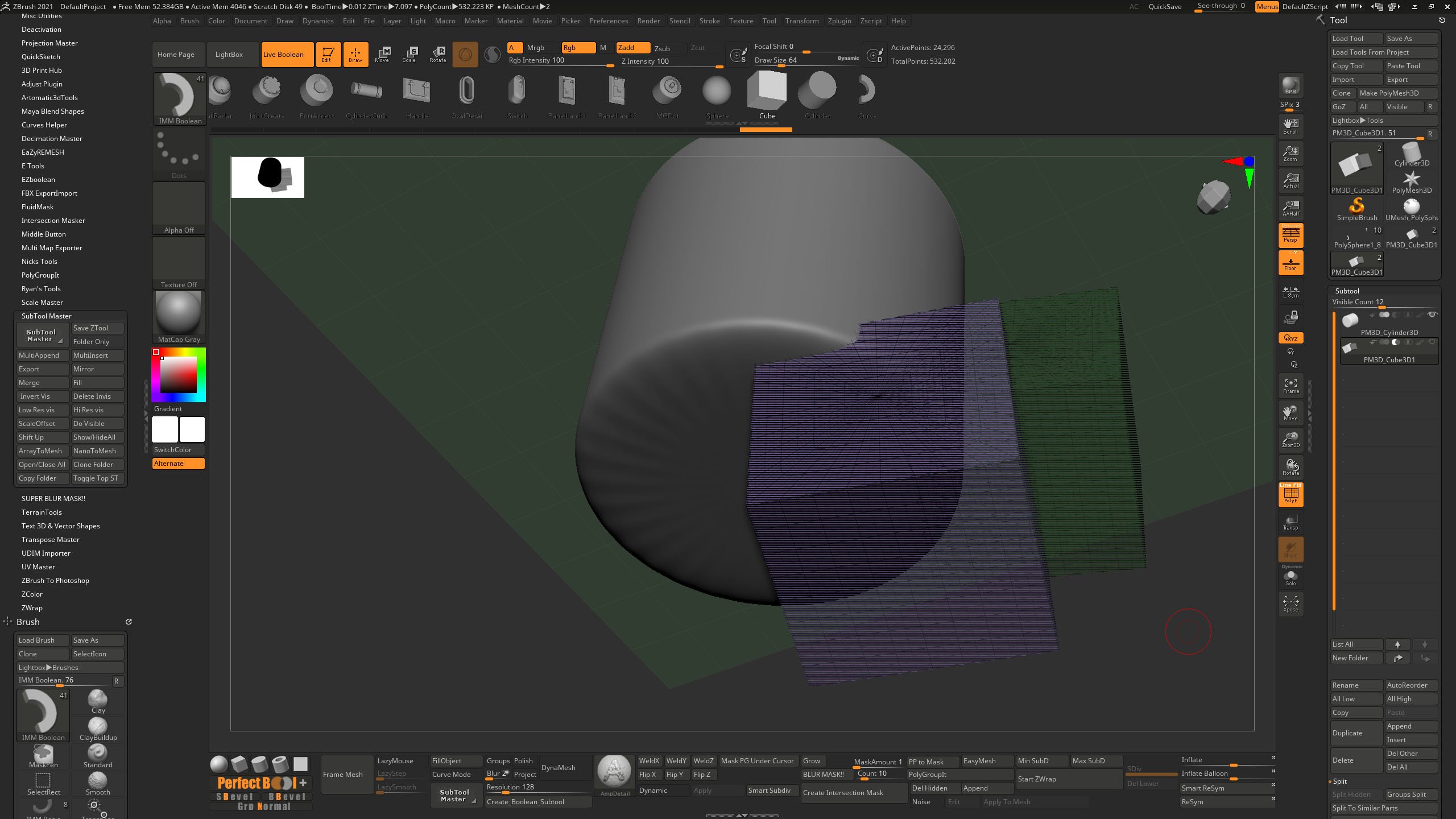 - The IMM boolean brush shapes are there (visible with the line draw feature) but they do not bool out/in.