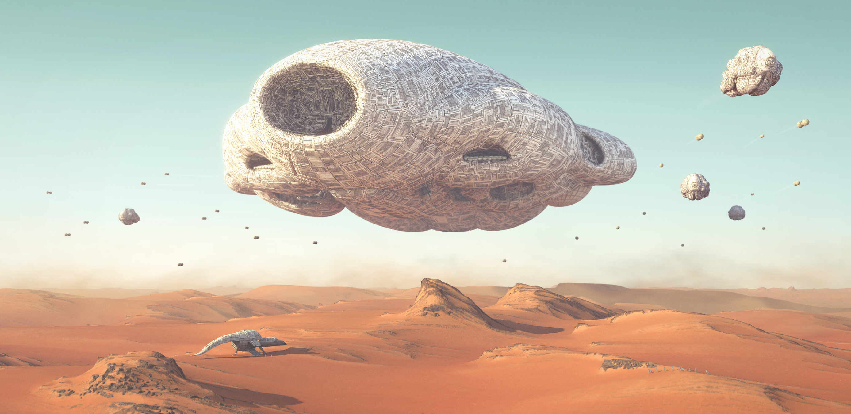 I have a workflow inside zbrush to create greeble, but it’s always been a bit tricky getting the mesh and details to translate over to other 3d packages, so there was a lot of tinkering to get everything set up. Was a lot of fun putting this all together. Used World Creator for the landscape mesh, Vray for renders. Cheers!