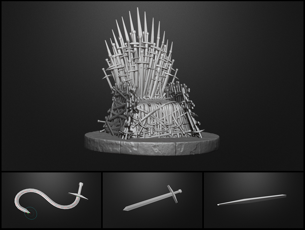 This download includes a Curve and Insert Mesh Brush Sets as well as the Throne of Swords Model (.ZTL and .OBJ).