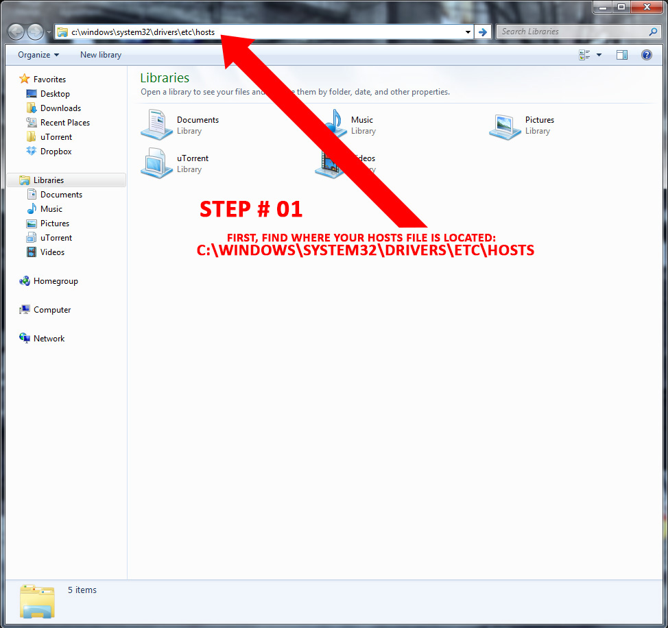NOTE: If you have UAC turned on, which is the default in Windows Vista and higher, then you may need to start Notepad as Administrator to edit the hosts file.