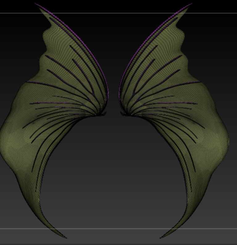 So for the best results here you probably want to make sure the skin stretched between the wings is not a 2D surface, but rather a 3D shape with minimal thickness. Then create a new mesh by merging all the pieces of the wings together with Live Boolean or Dynamesh.
