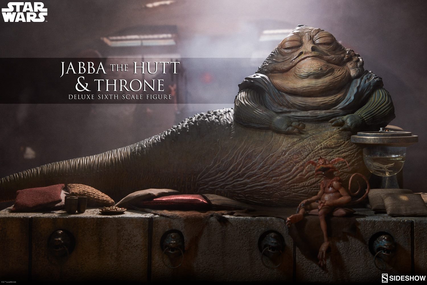 Jabba the Hutt and Throne Deluxe Sixth Scale Figure for Sideshow Collectibles. He’s got swap out arms and multiple eyes and mouths. Some additional accessories by the Sideshow Team. PM, Kevin Ellis and physical piece by the masters at Sideshow. Photo by Sideshow Collectibles’ Photo Studio.