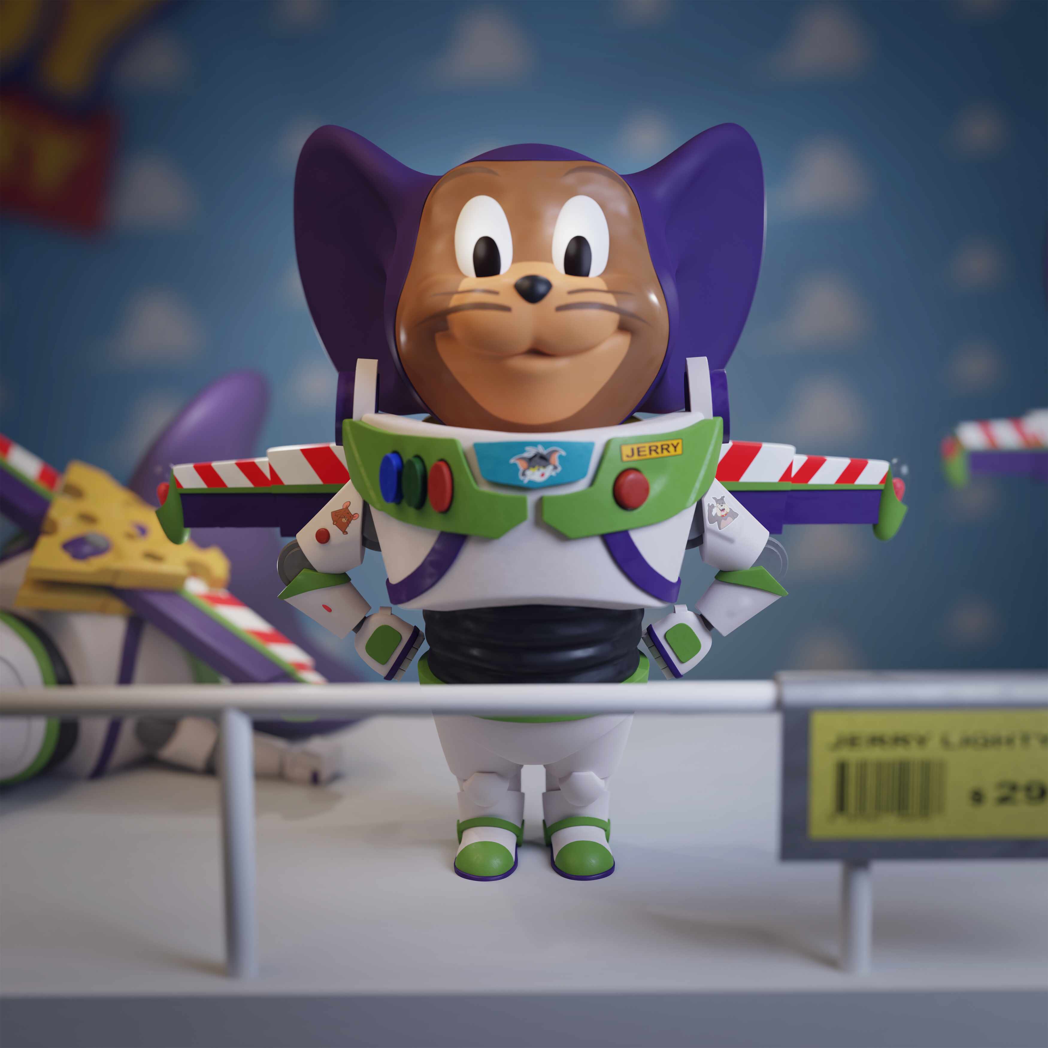 As a huge fan of Disney characters I made the Jerry Lightyear model (crossover between Jerry from Tom and Jerry and Buzz Lightyear from Toy Story) in 2020 for 3D printing.