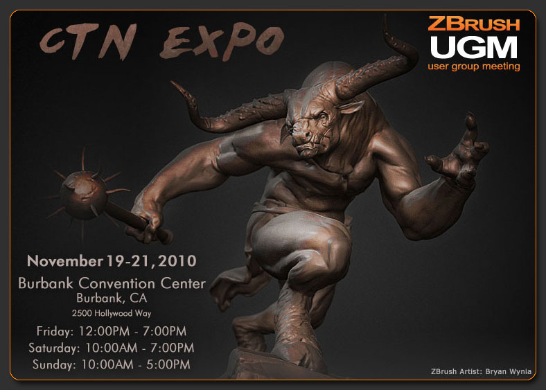 Join Pixologic this weekend at the CTN Animation Expo 2010 as we present top renowned film and gaming artists giving live demonstrations of the newest exciting features found in ZBrush 4!