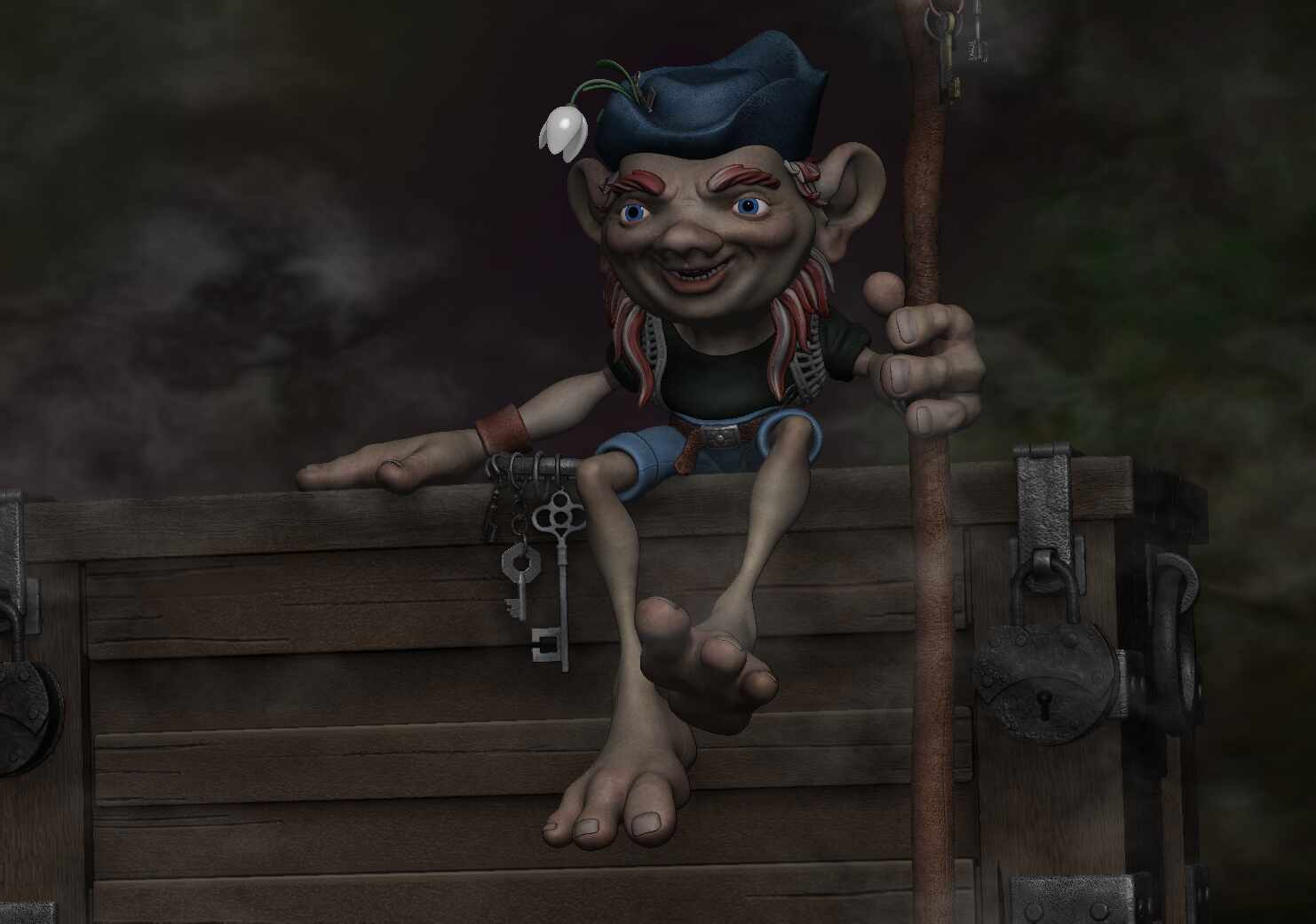 Hello everyone, this is my latest work Key’s Keeper. He lives in a dungeon or cave full of treasures. All costly things are locked in chests and lockers. His main task is to ensure that everything is under lock and guard the keys.