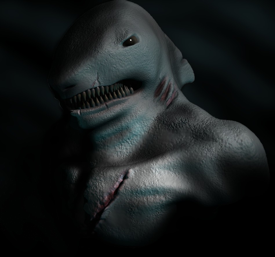 Here is a work in progress image of a King Shark fan art that I am making in Zbrush Core.