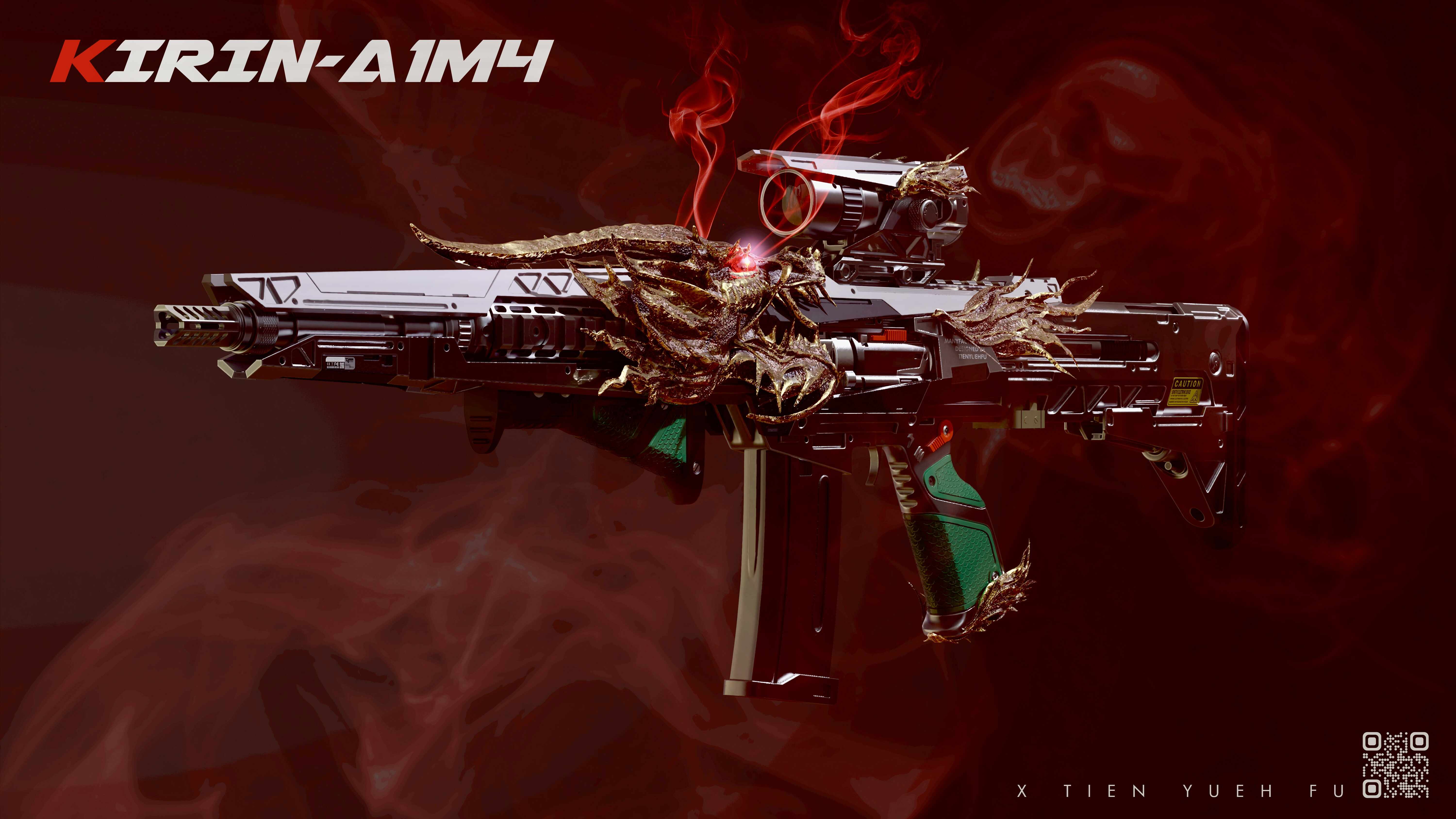 Fun personal project combining Chinese mythical creature with futuristic rifle design.