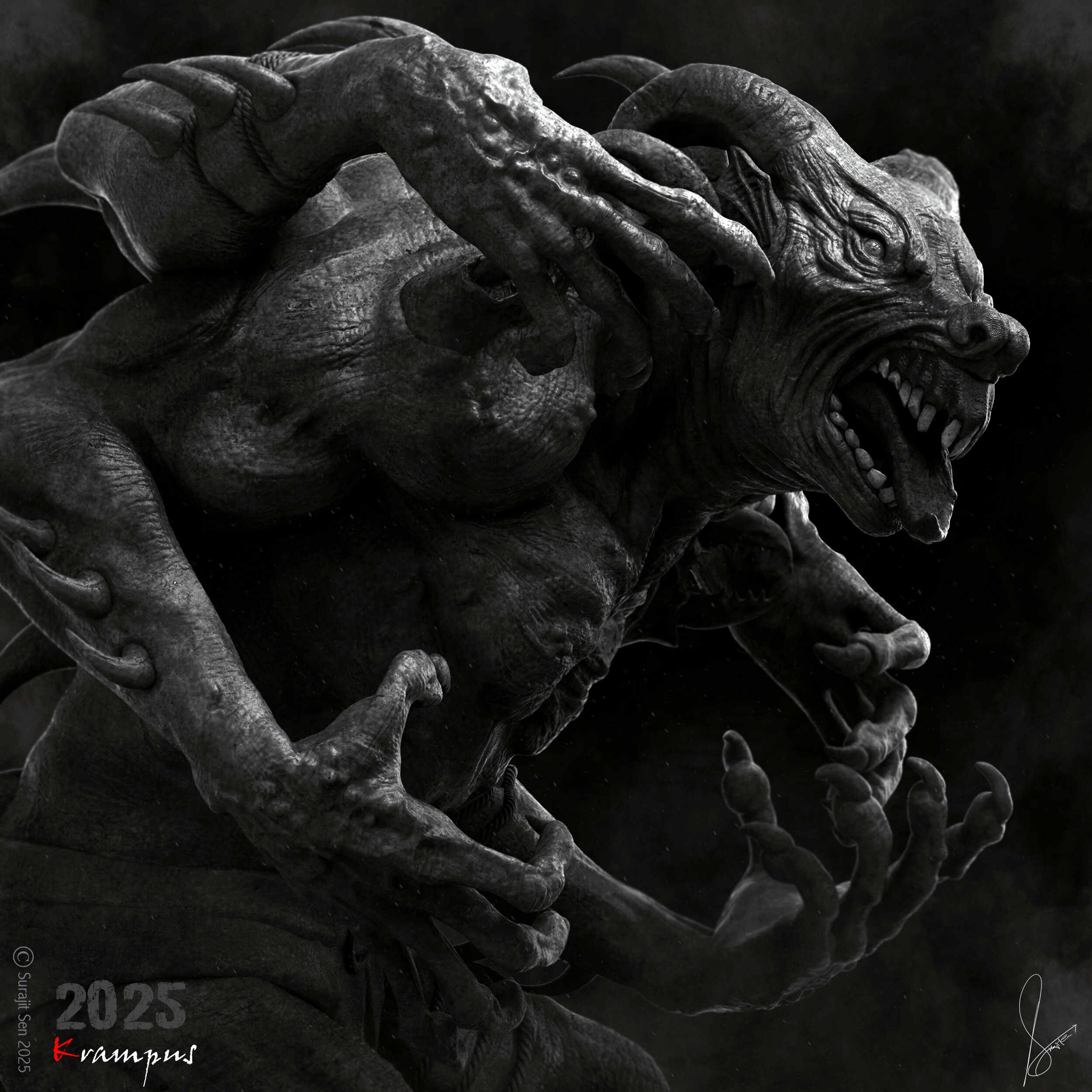 Krampus is a horned, anthropomorphic figure rooted in Central European folklore, embodying the punitive shadow of Saint Nicholas.