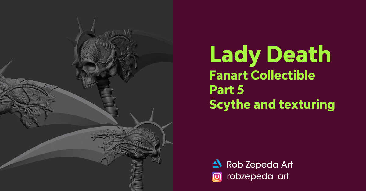 For Lady Death’s weapon I wanted to go further of the traditional wood scythe, I want to impregnate this asset with a supernatural mood, is not a common weapon or tool it’s an object created in hell, is almost a living weapon.