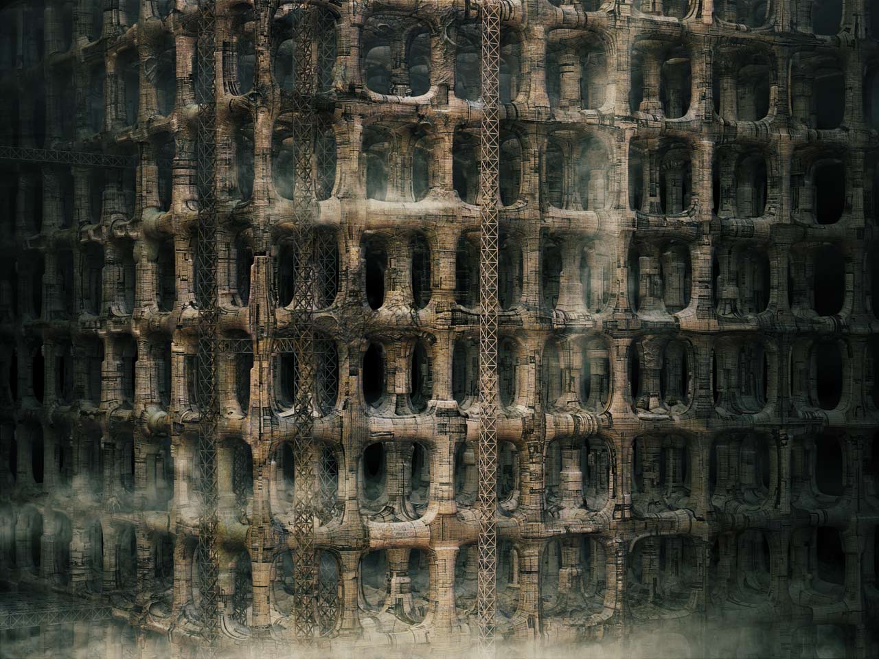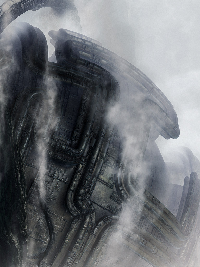 interesting art work. the similarity to H.R. Giger and possibly Zdzislaw Beksinski is quite well done. It always reminds me of realms in dreams or Astral that one can encounter. form, just form not need for purpose it is as it is.