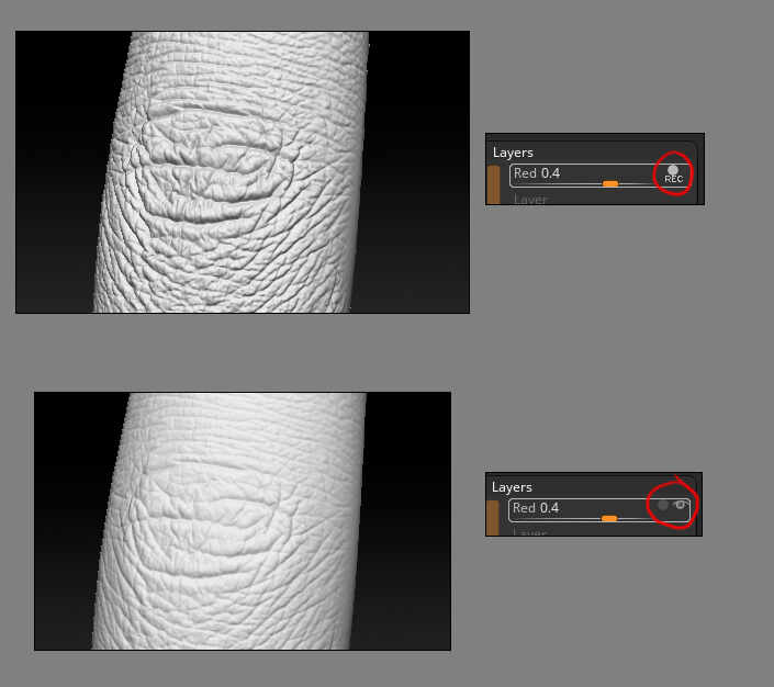 Could i check if this is a normal issue with layers? I’m getting a discrepancy with the displacement height depending whether the layer is ‘recording’ or not.
