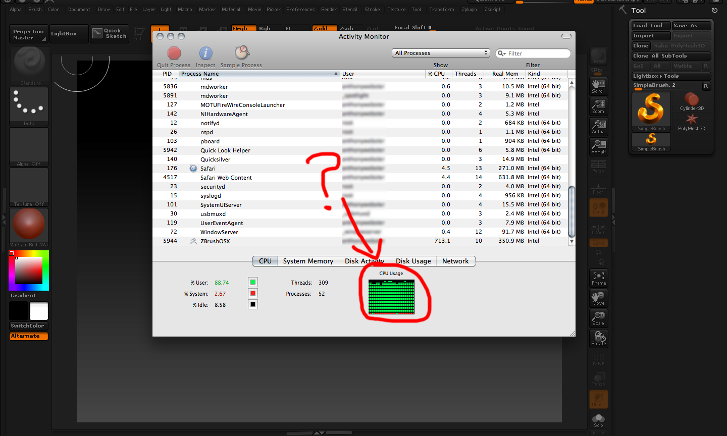 I don’t understand why ZBrush and Sculptris both cause the CPU Fan to be at 100% at minimal usage all the time? Basically just opening the apps and then moving the mouse causes this. I’m running a 2.0 i7 MBP 10.6.8. These are the only two 3d applications that cause this problem for me, and renders both applications unusable. What’s going on with these programs to cause this?